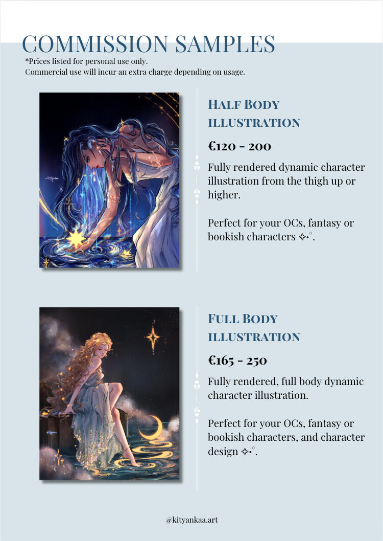 Hello! Welcome to kityankaa's commissions pageHere you will find sample artworks and everything you need to know about my commissions process, pricing and terms of service.Commissions Status: OPENLooking forward to working with you! - Lena πΰ§